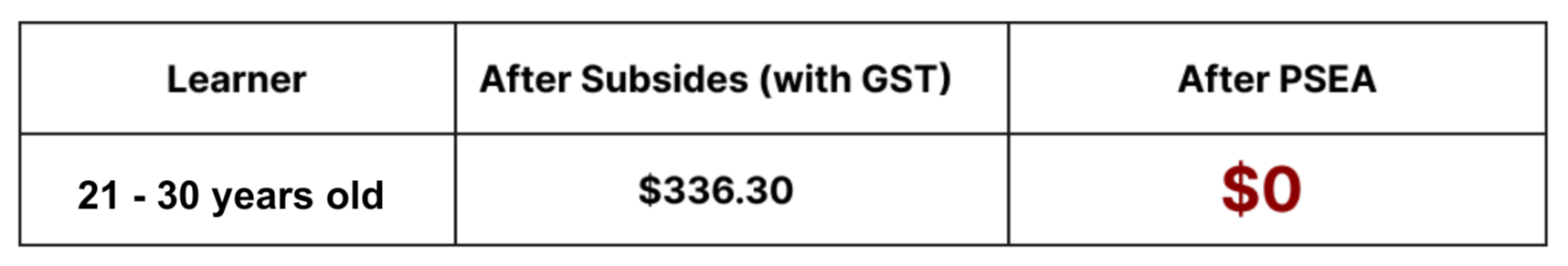 PSEA: Singaporeans aged 30 years old and below can use their Post‑Secondary Education Account to fully offset the remaining fees.